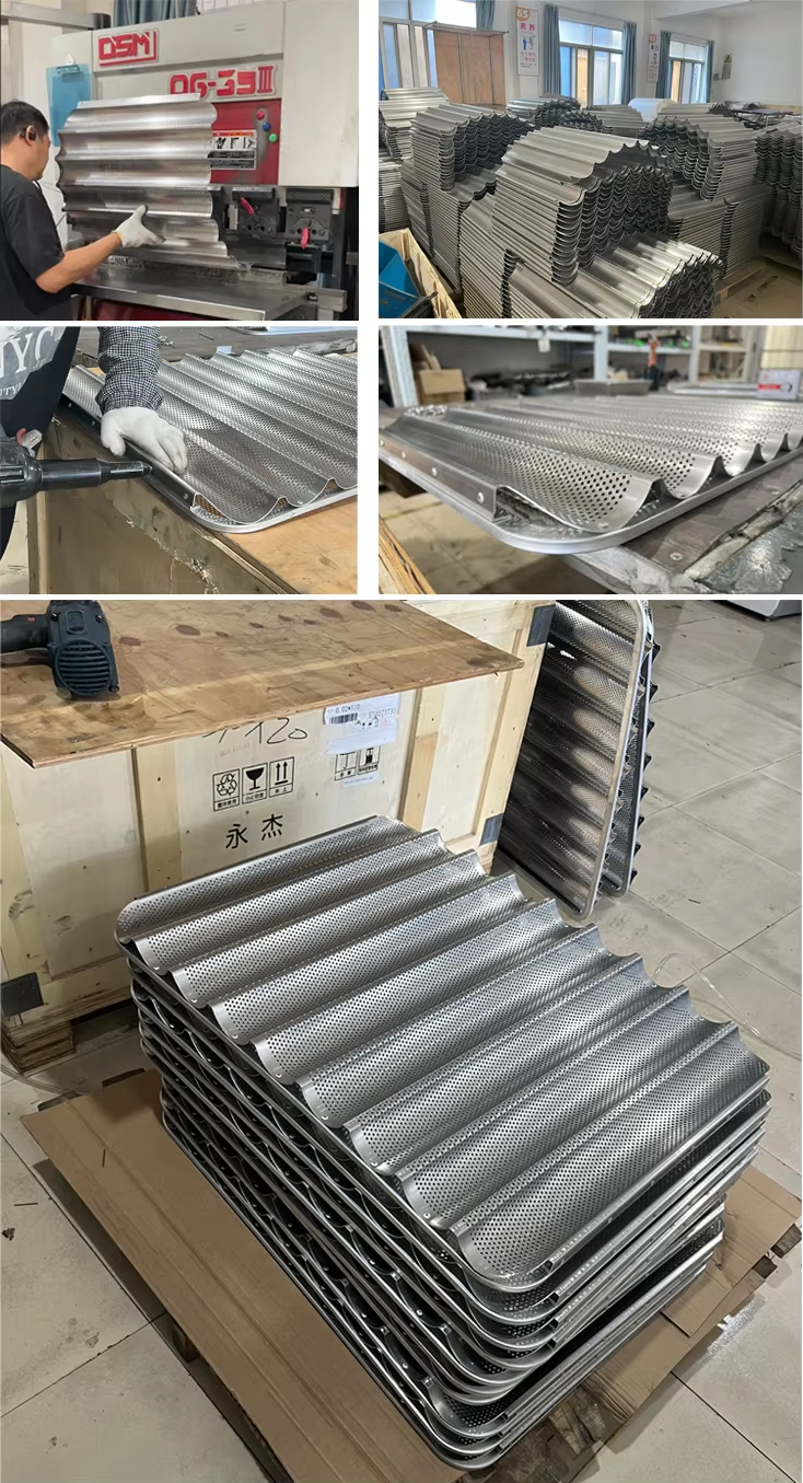 Aluminum Non Stick Waves Baguette French Bread Baking Tray Perforated Baguette Pan